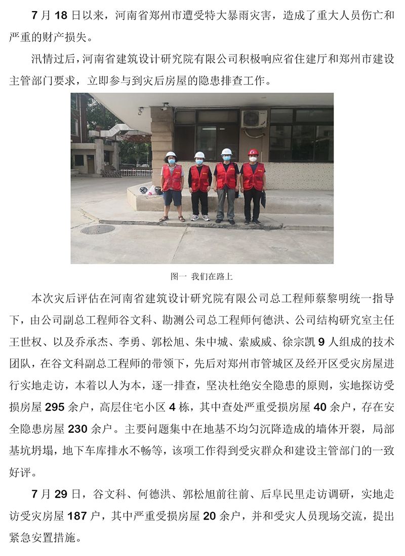 助力災(zāi)后房屋安全排查——河南省建筑設(shè)計研究院有限公司開展管城區(qū)和經(jīng)開區(qū)災(zāi)后房屋安全隱患排查工作