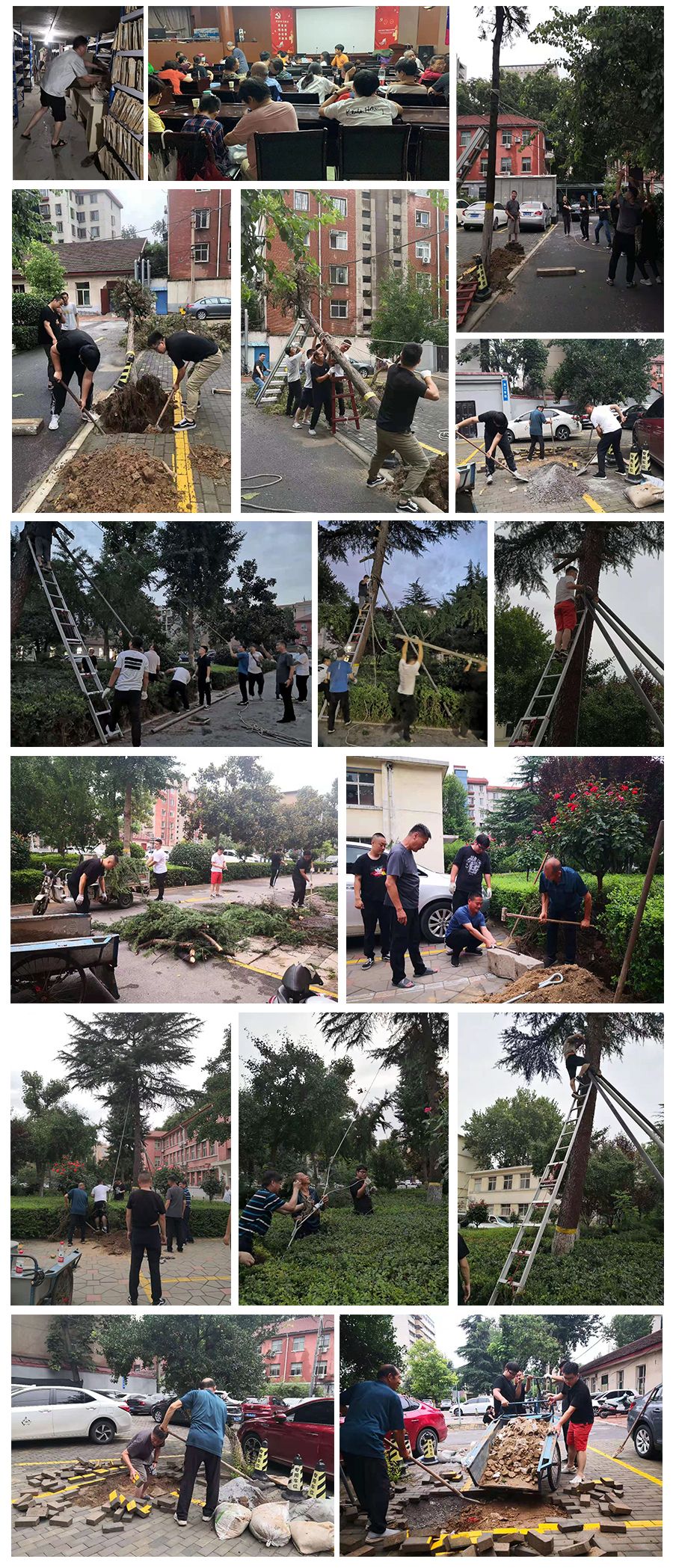 災(zāi)后辦公室又再次組織和帶領(lǐng)部門全體人員,配合社區(qū)為院內(nèi)住戶集中搬運(yùn)并有序分發(fā)救災(zāi)物資,制作防汛抗洪宣傳板報。大家聞令而動、辦公室領(lǐng)導(dǎo)班子沖鋒在前,不叫苦叫累、互相鼓勵,配合齊動手,齊心協(xié)力完成任務(wù)。及時檢查并排除公司院內(nèi)樹木倒伏、地面塌陷10多處,險情結(jié)束,很多人雙腳已泡發(fā)、雙手磨起泡、受了傷,都沒有一句怨言。