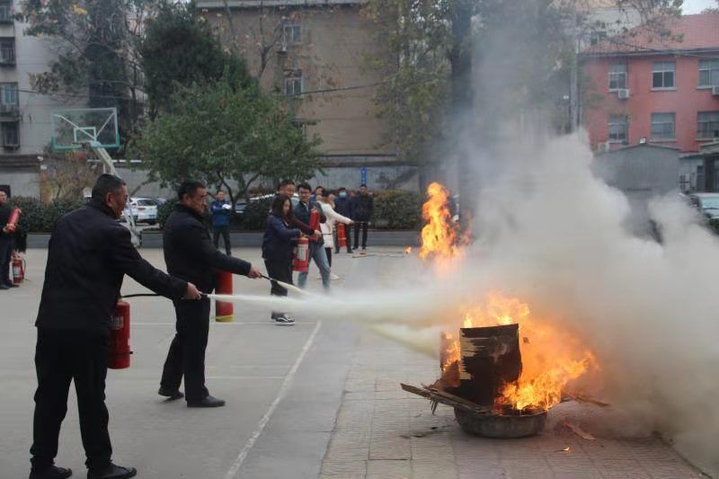 各部門領(lǐng)導(dǎo)高度重視,均能按照公司消防演練通知要求,安排人員參與。辦公室郭慧主任全面負(fù)責(zé)滅火演練活動(dòng),清點(diǎn)到場(chǎng)人數(shù),宣讀公司2019年滅火演練方案,發(fā)布演練開(kāi)始指令,演練按計(jì)劃進(jìn)行,參加演練人員手持干粉滅火器分小組有效地?fù)錅缑骰?。演練開(kāi)始前,邀請(qǐng)年捷消防設(shè)備公司隨經(jīng)理實(shí)地為現(xiàn)場(chǎng)人員講解、示范滅火器正確操作使用方法。公司28個(gè)部門指定員工、14家門面房租戶代表、職工食堂人員共70多人參加此次消防滅火演練活動(dòng),通過(guò)實(shí)際操作,使大家掌握了正確使用滅火器的方法,增強(qiáng)了自我保護(hù)能力,具備了一定的滅火知識(shí)和技能。