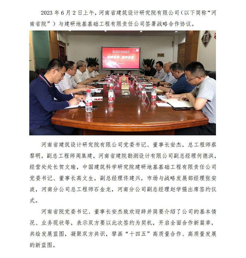 HNAD戰(zhàn)略合作 | 河南省建筑設(shè)計(jì)研究院有限公司與建研地基基礎(chǔ)工程有限責(zé)任公司達(dá)成戰(zhàn)略合作