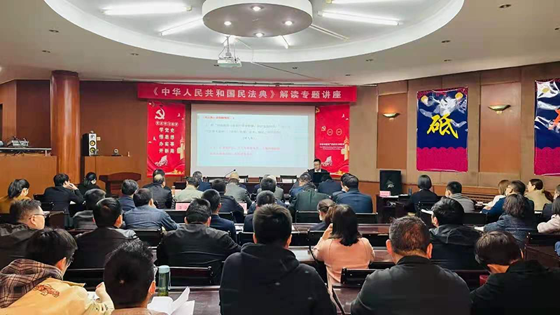為深入貫徹習(xí)近平法治思想,加強(qiáng)法律法規(guī)知識(shí)學(xué)習(xí),進(jìn)一步提升公司黨員干部的法治思維和經(jīng)營(yíng)管理水平,確保依法經(jīng)營(yíng)、依法治企,根據(jù)年度黨建工作計(jì)劃,4月16日上午,公司黨委舉辦《民法典》專題輔導(dǎo)講座,邀請(qǐng)河南國(guó)銀律師事務(wù)所專職律師管歌講授“民法典重要規(guī)則變化解讀”。公司黨委書(shū)記安杰主持講座,公司黨委委員、各黨支部書(shū)記及經(jīng)營(yíng)管理人員,以及國(guó)銀黨員律師團(tuán)隊(duì)60余人參加活動(dòng)。