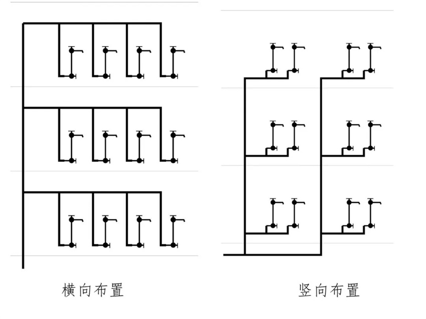 給水干管布置形式一般有橫向布置和豎向布置兩種形式。