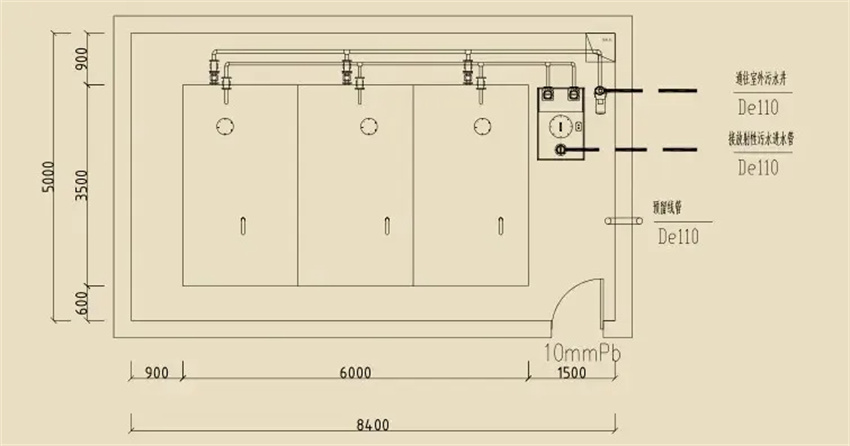 (1)排放含有放射性污水的管道應(yīng)采用機(jī)制含鉛的鑄鐵管道,水平橫管應(yīng)敷設(shè)在墊層內(nèi)或?qū)S梅垒椛涞蹴攦?nèi),立管應(yīng)安裝在壁厚不小于150mm的混凝土管道井內(nèi);管道也可用鉛皮保護(hù)防輻射;