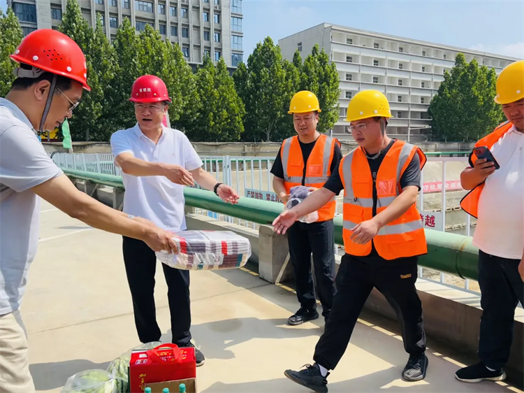 盛夏時(shí)節(jié),暑氣蒸騰。7月23日及25日上午,公司黨委聯(lián)合監(jiān)事會(huì)、工會(huì)、黨委辦公室、團(tuán)總支以及九三學(xué)社工程設(shè)計(jì)支社代表,組成慰問團(tuán)隊(duì),先后來到鄭州市國防科技學(xué)校項(xiàng)目工地、公司新區(qū)辦公樓及配套住宅項(xiàng)目工地,開展"送清涼"慰問活動(dòng),為奮戰(zhàn)在高溫一線的建設(shè)者們送去關(guān)懷與清涼。