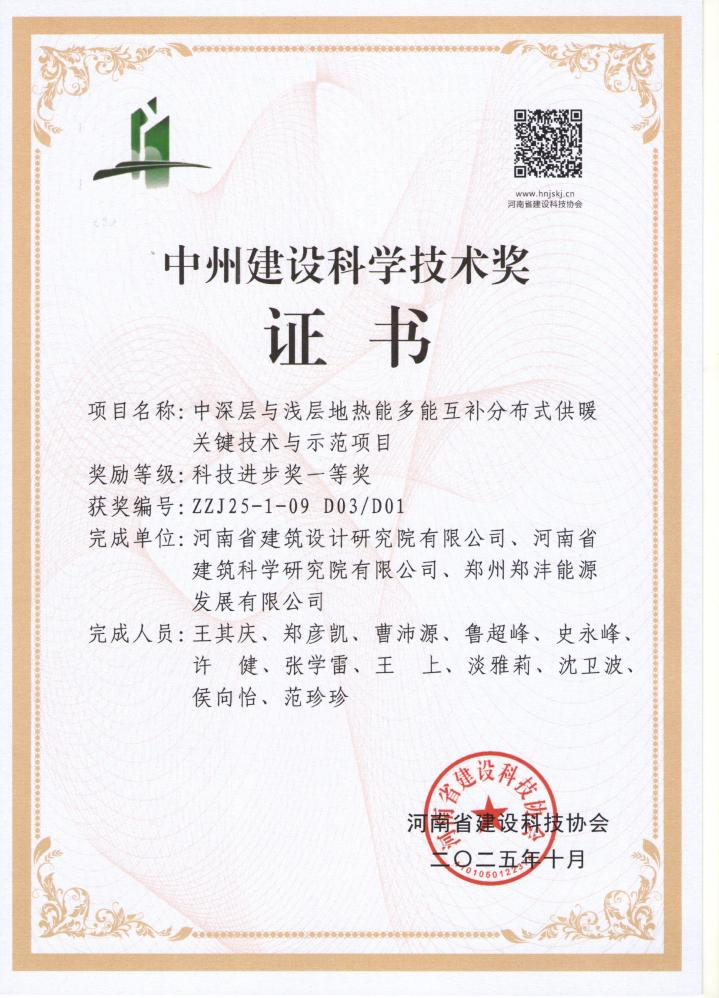 我院自2009年起,系統(tǒng)開展中深層、淺層地?zé)崮芾眉夹g(shù)研究,取得了豐碩成果。近期,“中深層與淺層地?zé)崮芏嗄芑パa分布式供暖關(guān)鍵技術(shù)與示范項目”榮獲中州建設(shè)科技進步獎壹等獎,標(biāo)志著我院在該領(lǐng)域的創(chuàng)新實踐再獲認(rèn)可。