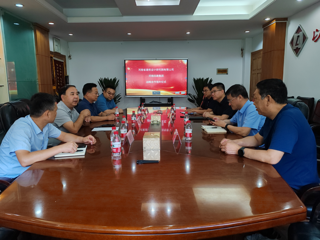 2023年7月18日,河南省建筑設(shè)計研究院有限公司與河南四建集團股份有限公司于我公司科研辦公樓聯(lián)袂舉行戰(zhàn)略合作簽約儀式。河南省建筑設(shè)計研究有限公司總經(jīng)理張映珍、南陽分公司總經(jīng)理陳春強、副總經(jīng)理樊振東、胡殿彥與河南四建集團股份有限公司總裁賈俊鋒、副總裁代偉、集團總工程師樊曉東、副總工程師張弛作為雙方簽約代表共襄盛舉。