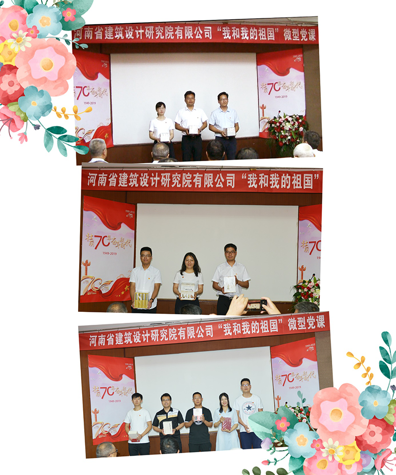為慶祝中華人民共和國(guó)成立70周年,大力弘揚(yáng)以愛(ài)國(guó)主義為核心的偉大民族精神,充分宣傳展示中華人民共和國(guó)成立70年來(lái)特別是改革開(kāi)放以來(lái)的光輝歷程、偉大成就和寶貴經(jīng)驗(yàn),按照省住房城鄉(xiāng)建設(shè)廳和公司“不忘初心、牢記使命”主題教育工作安排,7月23日上午,公司“我和我的祖國(guó)”微型黨課比賽在報(bào)告廳舉行。公司黨委委員、各黨支部書(shū)記出席比賽并擔(dān)任評(píng)委,各黨支部委員及黨建聯(lián)絡(luò)員到場(chǎng)觀摩聆聽(tīng)。