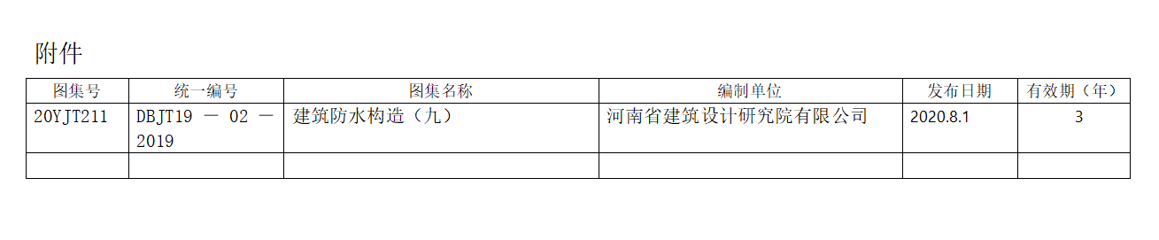 關(guān)于發(fā)布河南省工程建設(shè)標(biāo)準(zhǔn)設(shè)計(jì)《建筑防水構(gòu)造(九)》圖集的公告