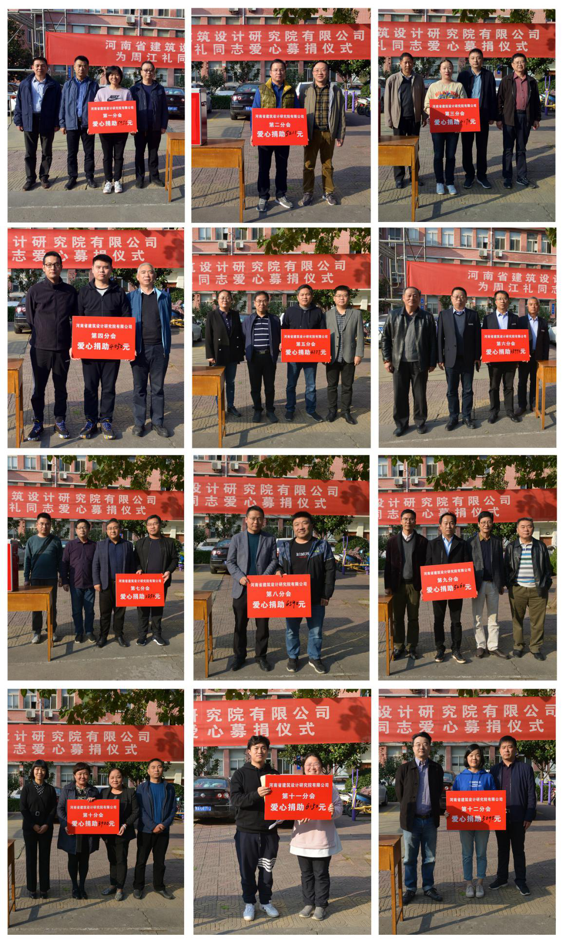 ??2019年10月18日下午,河南省建筑設(shè)計(jì)研究院有限公司在籃球場舉行為周江禮同志愛心募捐儀式,公司黨政班子成員出席活動并帶頭捐款,各部門主要負(fù)責(zé)人、各支部書記、各分會主席及公司員工約百余人參加活動。儀式由黨委委員、工會主席張玉民主持。